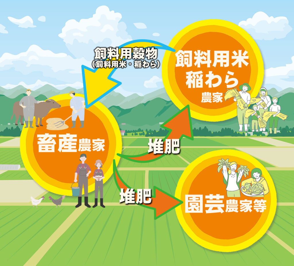 畜産農家への安定的な飼料の供給や堆肥の活用による化学肥料低減に向けた取組を実施しています。